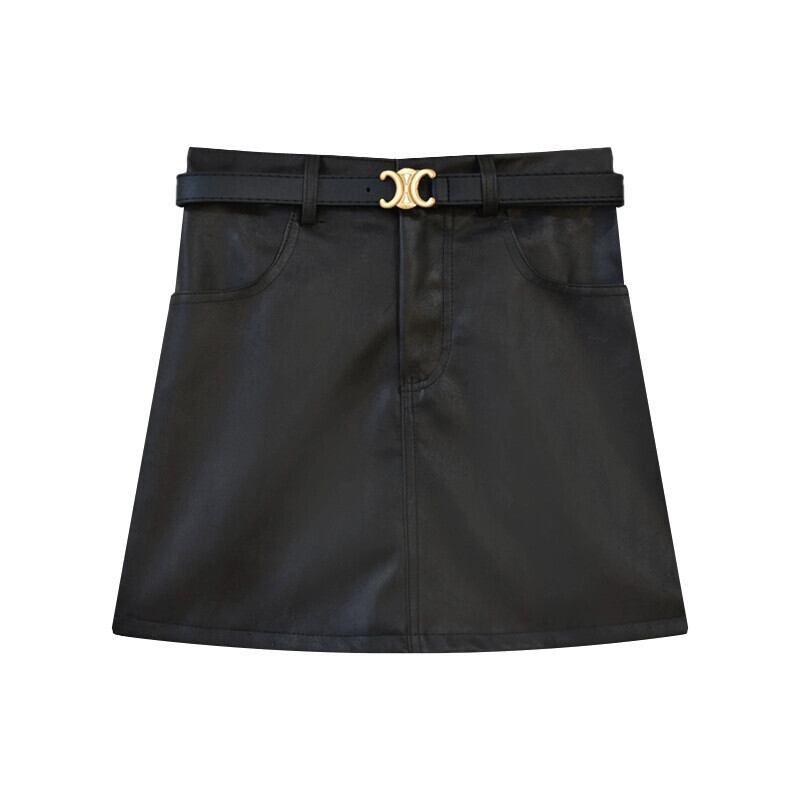 -ウエストヒップハグスカートスカートpuレザースカート秋と冬アメリカンaラインショートスカート小さな黒スカート婦人服 ブラック オータム 秋物 ウィンター 冬物 nana90414038457 | modepoisson
