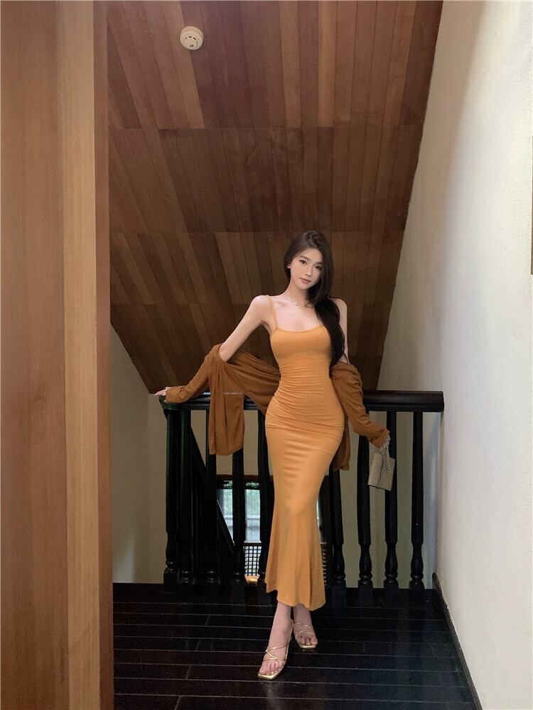 スリムサスペンダードレス、純粋なセクシー、スリムロングスカート、新しい夏のスタイル、フレンチスタイルのフィッシュテールヒップスカートの女性 サマー 夏物 ピュア nana17413798313 | modepoisson