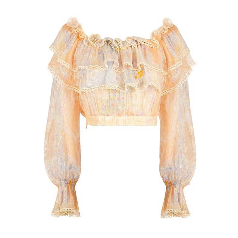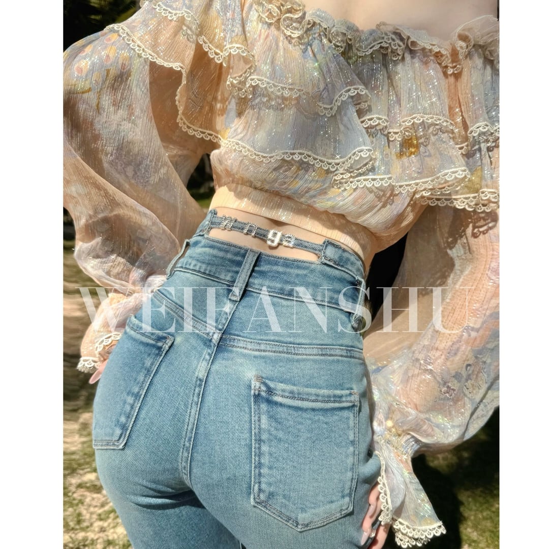 フレンチフリルワンショルダートップレディース、高級ショートレースシフォンシャツ春夏、長袖エレガントシャツ ロング スプリング 春物 サマー 夏物 nana99192659891 | modepoisson
