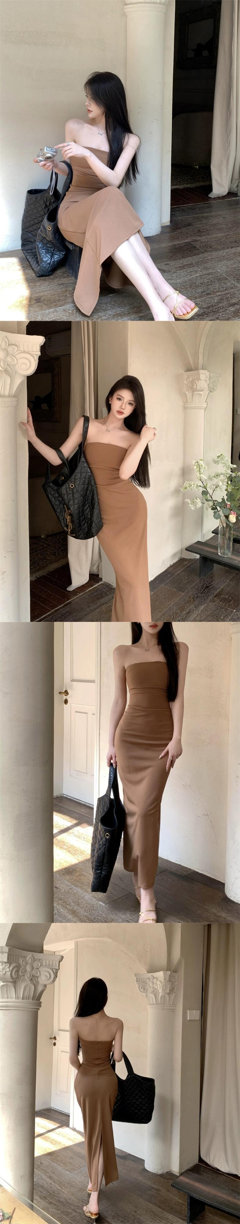 ストレッチチューブトップドレス夏の新しい優しいスタイルのロングスカート黒ウエスト気質スリムスリムスカート婦人服 ブラック サマー 夏物 nana17068030078