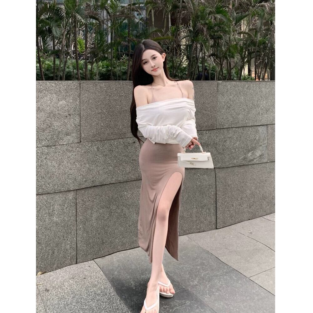 純粋な欲望サスペンダーセクシーなヒップカバードレス長袖日焼け止めトップ塩スタイルライト成熟したツーピーススーツ女性春の新スタイル ロング スプリング 春物 nana85244066040 | modepoisson