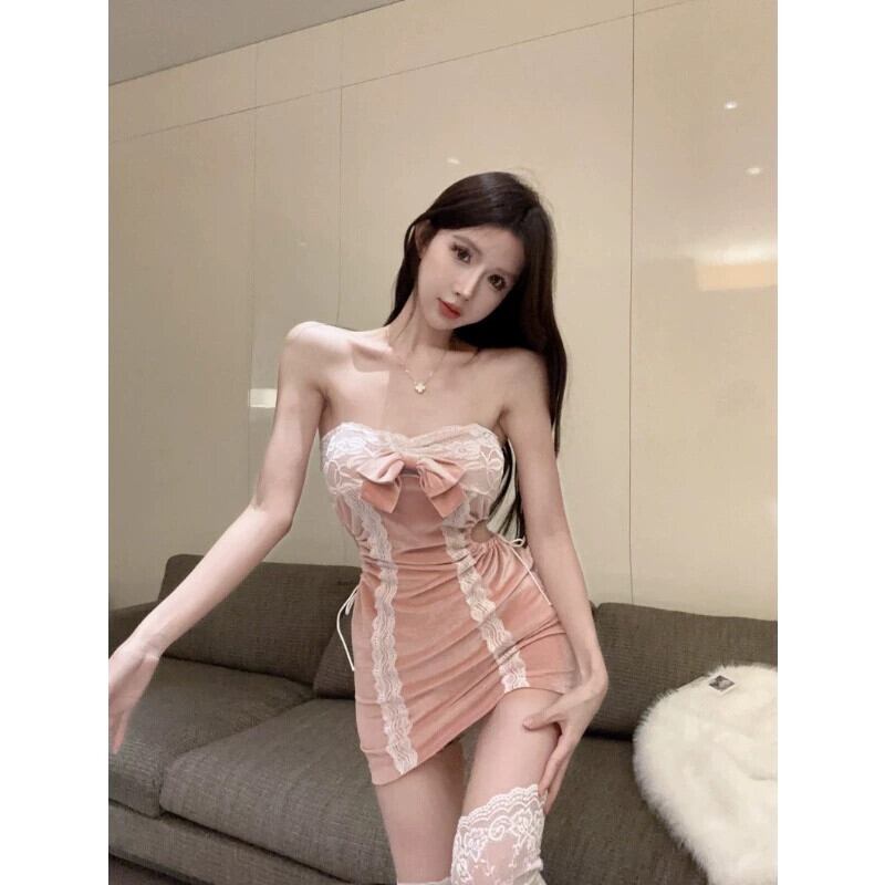 スリムなヒップハグドレス、ピンクの甘いベルベットのショートスカート、チューブトップ、レース、純粋な欲望のセクシーなスカート、新しい秋と冬のスタイルの女性 大人ガーリー スウィート キュート カジュアル オータム 秋物 ウィンター 冬物 スリムヒップ ピュア nana705286346 | modepoisson