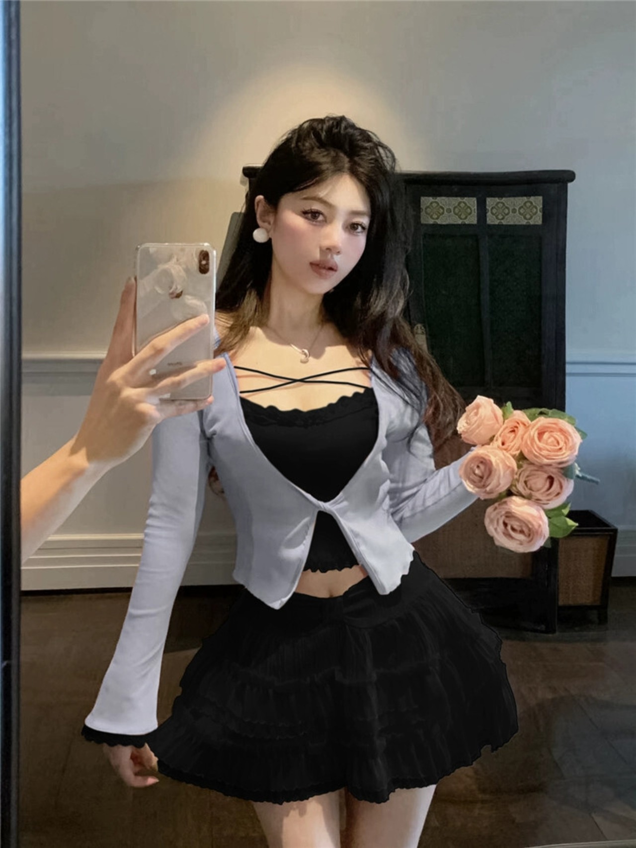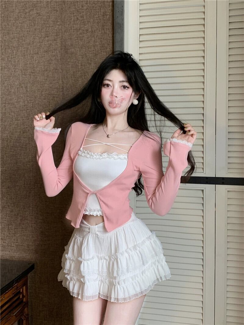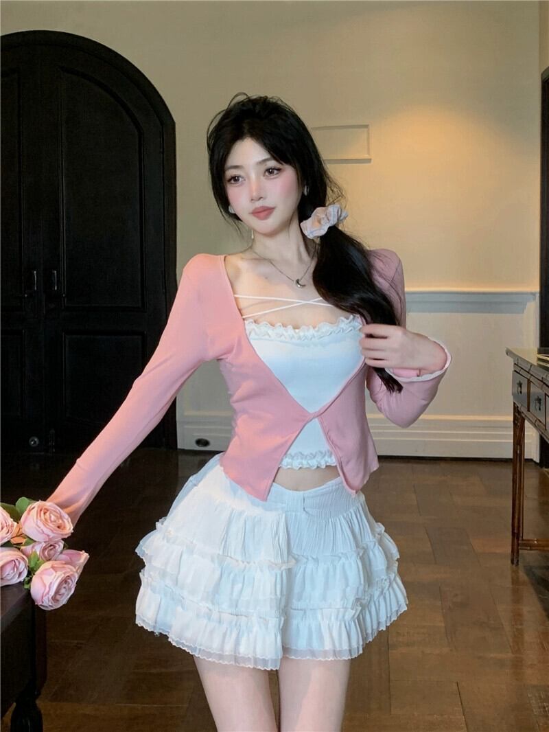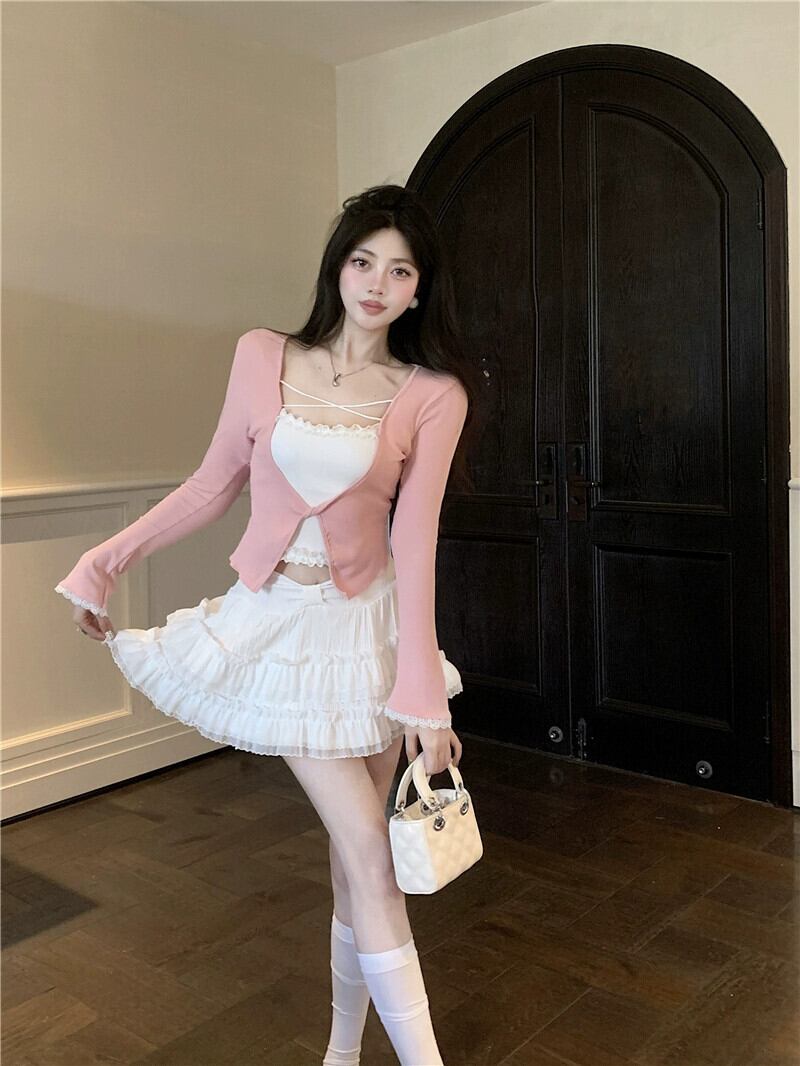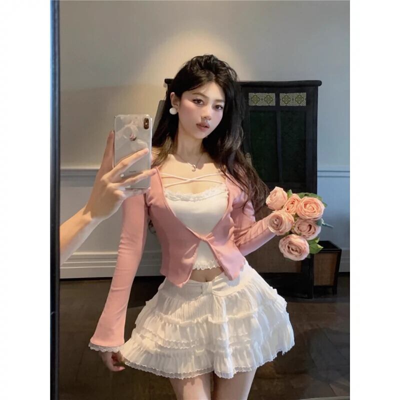 フェイクツーピースレーストップ甘いネクタイスリムフィットスーツ女性の 2024 年春の新作ふわふわ A ラインスカート 大人ガーリー スウィート キュート カジュアル スプリング 春物 Aライン nana35217314780 | modepoisson