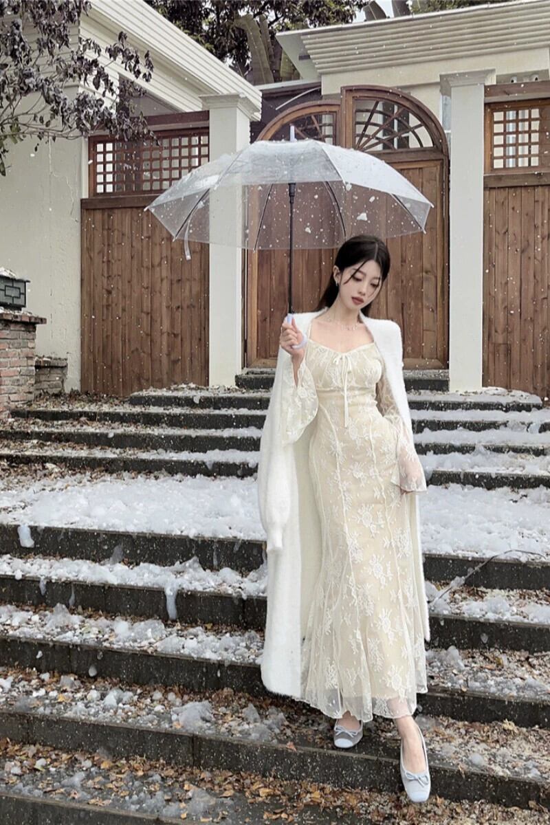 ニットレースドレス女性のウエスト痩身フィッシュテールロングスカート秋と冬のフレンチボトニングハイエンドスカート オータム 秋物 ウィンター 冬物 nana5984607451 | modepoisson