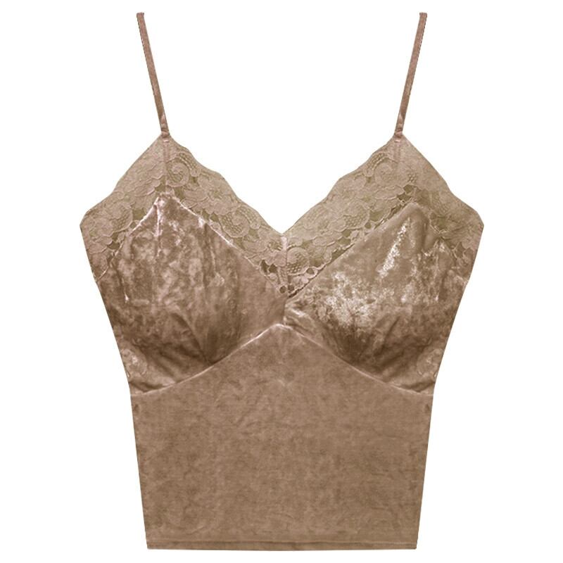 アメリカンベルベットスプライシングレース小さなキャミソール女性が秋と冬に着用する純粋な欲望のセクシーなノースリーブボトムトップアウターウェア オータム 秋物 ウィンター 冬物 ピュア nana87539141263 | modepoisson