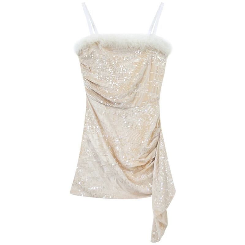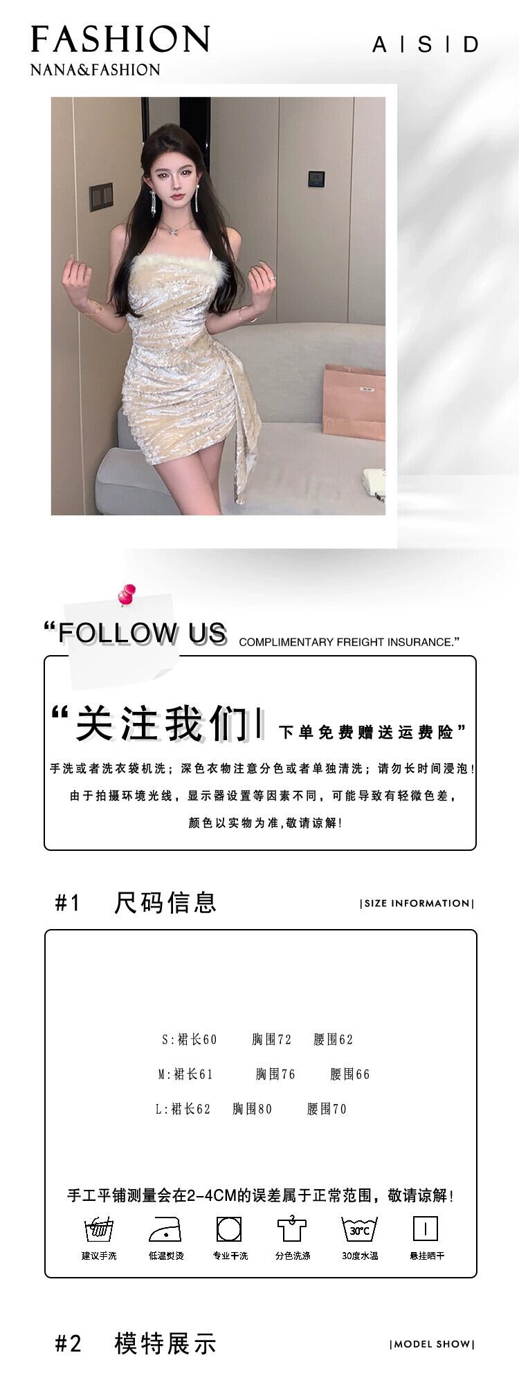フランスのスパンコールベルベットのヒップハグスカート女性の秋と冬の新しい気質社交家スリムフィットハイエンドサスペンダードレス オータム 秋物 ウィンター 冬物 nana1612592858 | modepoisson