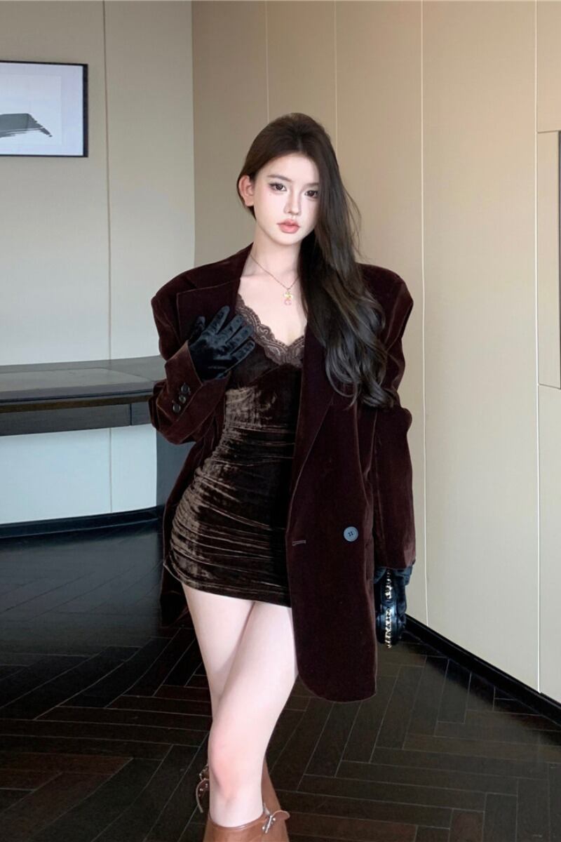 色:ブラックレーススカート,ブラウンのレーススカート,ベルベットキルティングジャケット