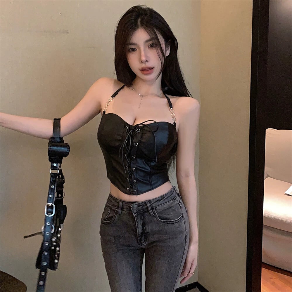 ホット純粋な欲望セクシーな黒フレンチショートスタイルホルターネックキャミソール女性の夏の新しいノースリーブトップ ブラック サマー 夏物 ピュア nana34809073616 | modepoisson
