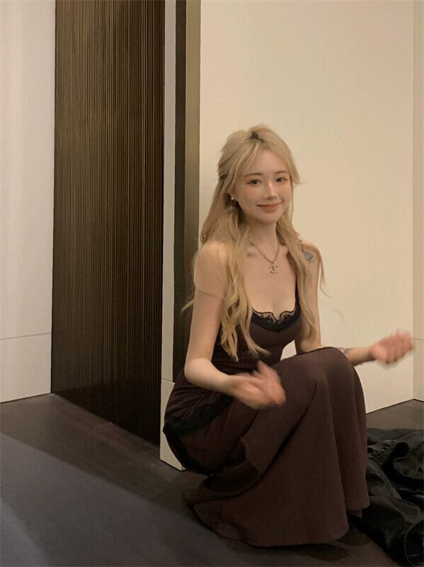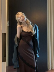ed スプライシング気質ドレス新しいボトミングストラップレースフィッシュテールスカート秋と冬のフレンチロングスカート婦人服 オータム 秋物 ウィンター 冬物 nana56323562907 | modepoisson