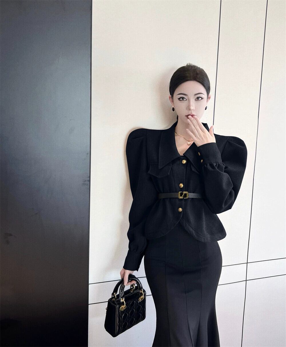 -終わりのプロフェッショナルツーピーススーツ、新しい初秋のファッション、淑やかな気質のジャケット、フィッシュテールスカート、婦人服 オータム 秋物 nana83146931734 | modepoisson