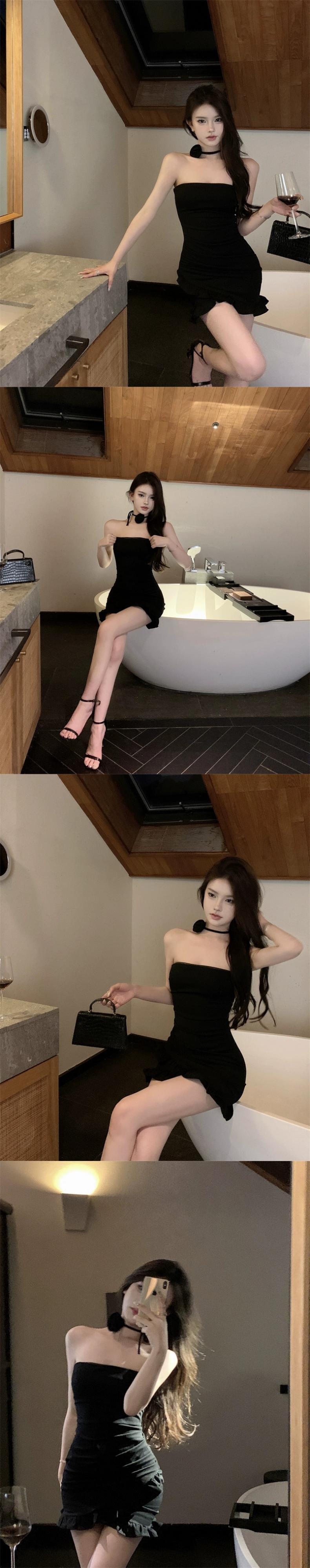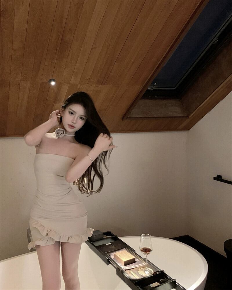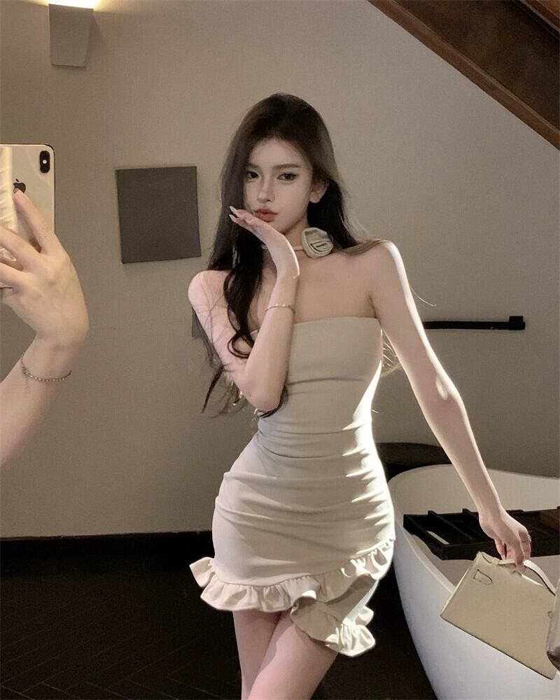フラワーワンショルダーチューブトップドレスレディース夏セクシーなショートスカート、ウエストと不規則なフリルとヒップハグスカート付き ラッフル サマー 夏物 フラワーデザイン nana29350426177 | modepoisson