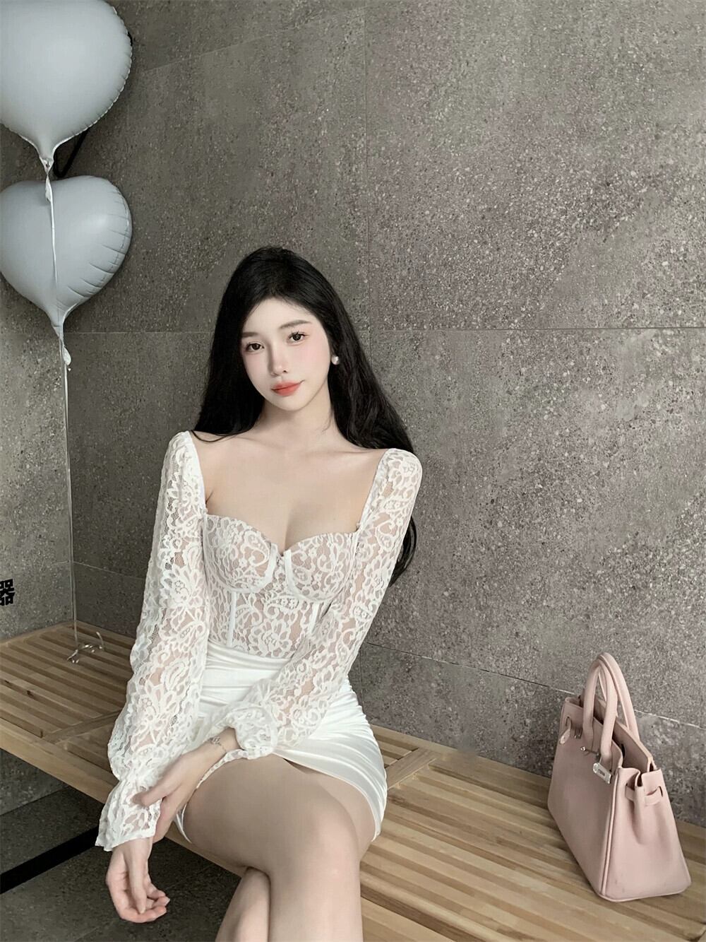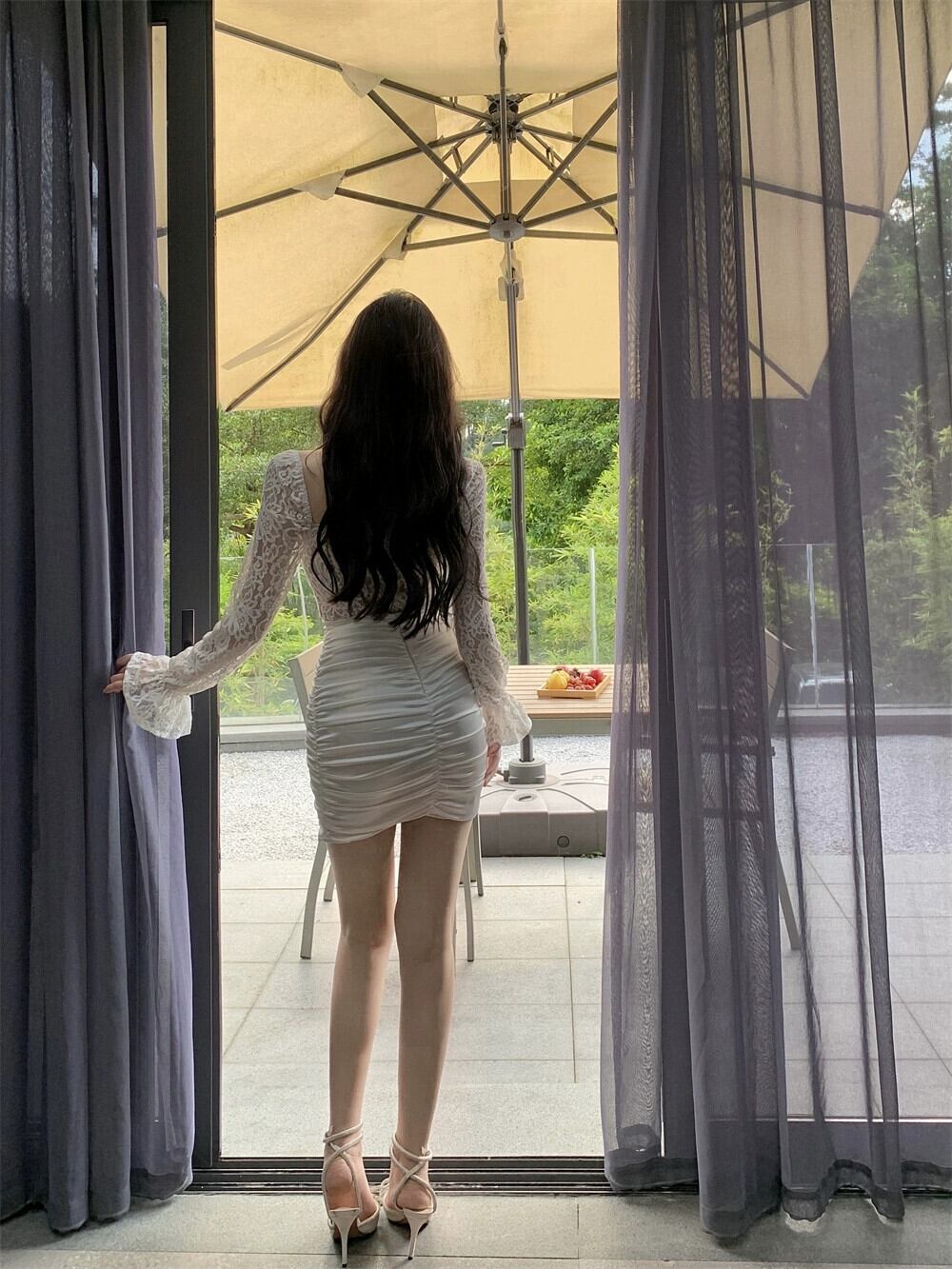女性のレースのドレスの女性の秋と冬のフレンチボトムスリムでセクシーなヒップハグスカート長袖タイトショートスカート ロング オータム 秋物 ウィンター 冬物 nana81900465789 | modepoisson