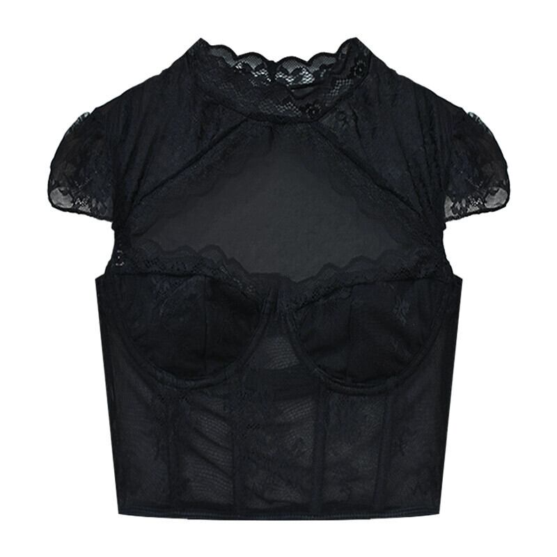 純粋な欲望のセクシーなホルターネックレースボトリングシャツと秋と冬のハイエンドブラックフレンチネクタイショートトップ女性 オータム 秋物 ウィンター 冬物 nana78012342462 | modepoisson