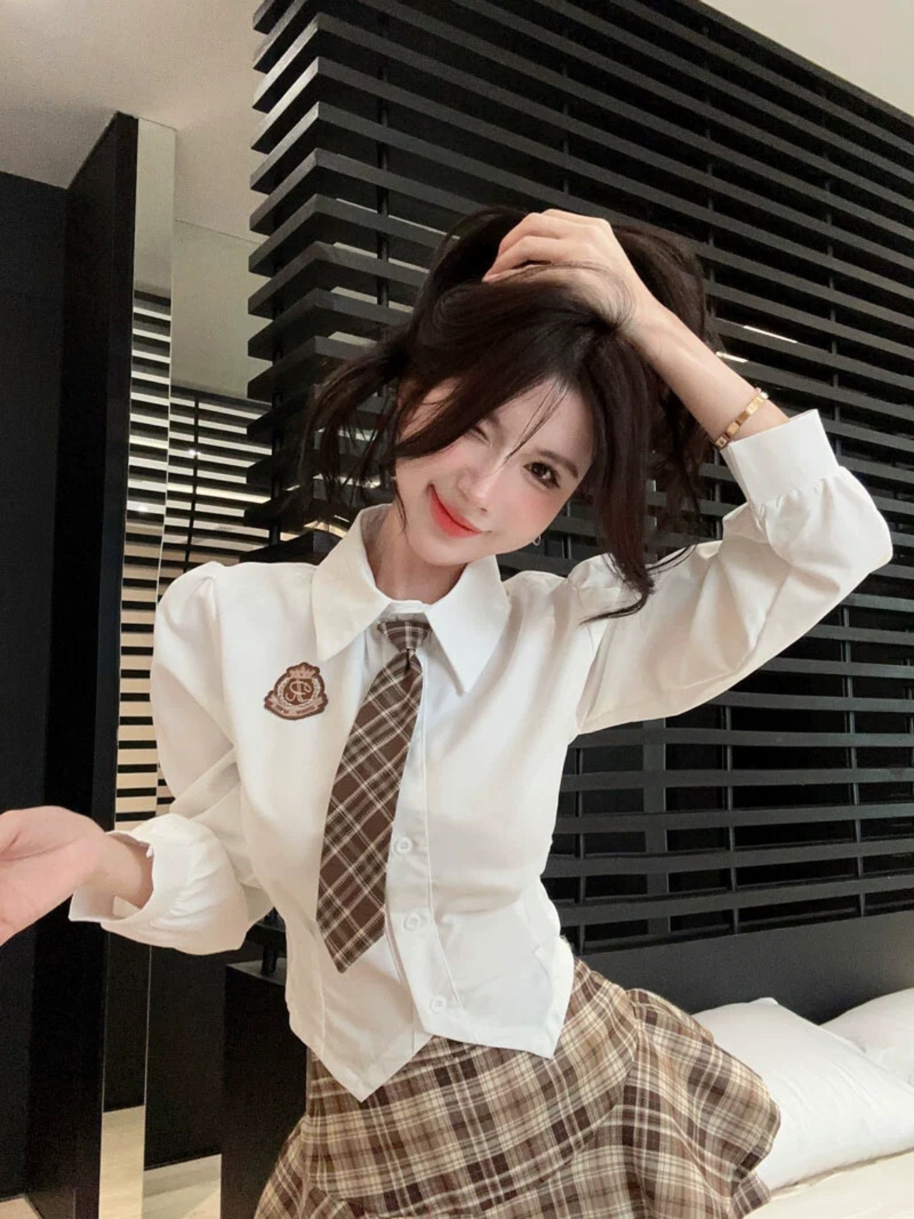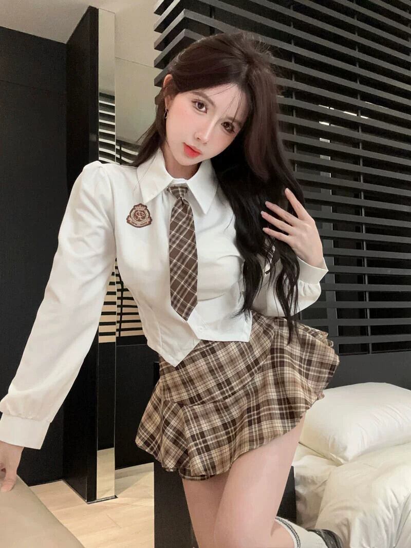 色:結ぶシャツ,チェック柄スカート,スーツ