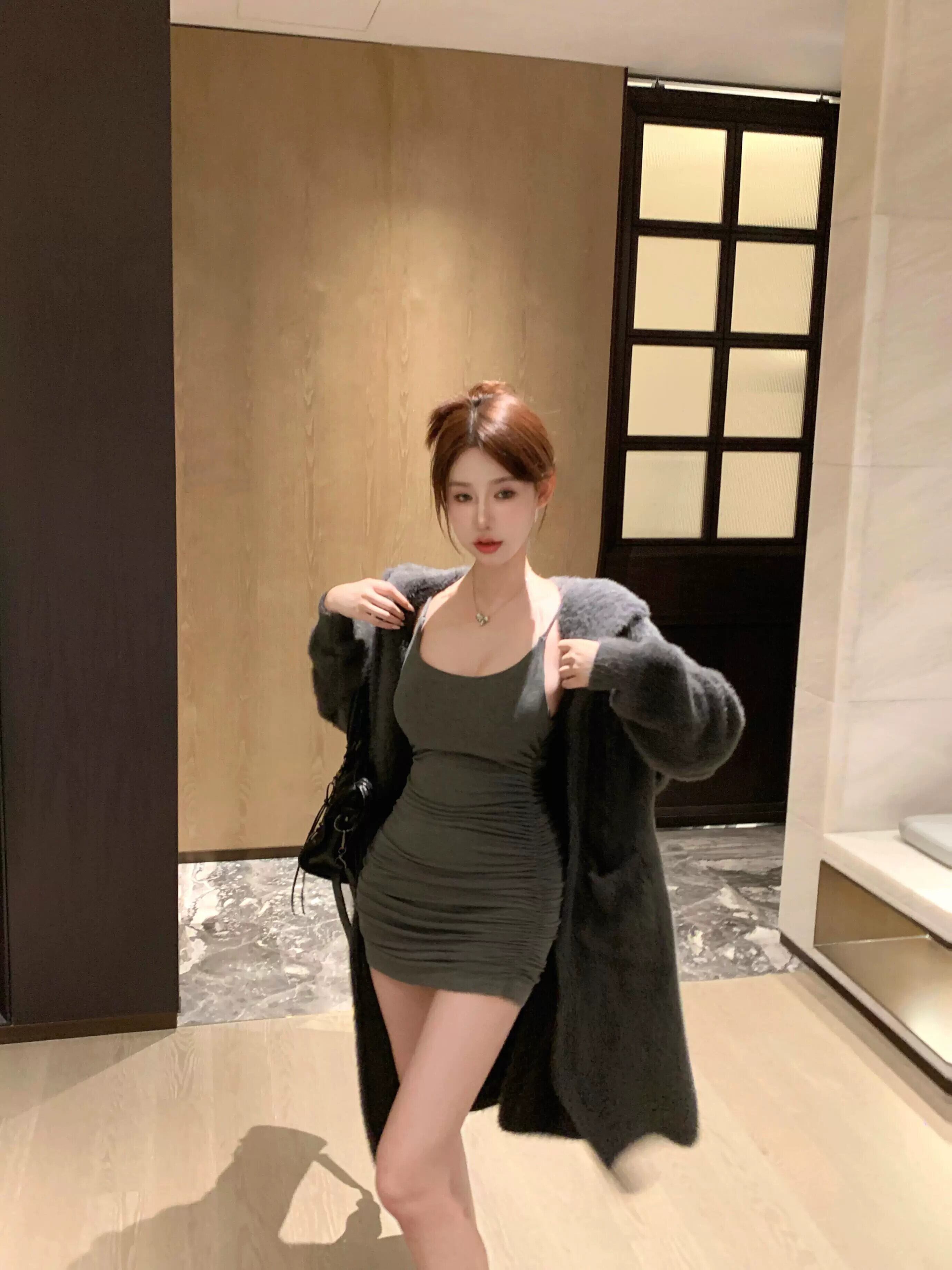 純粋な欲望ホットガールタイトなセクシーなサスペンダードレス女性の秋と冬スリムフィットベスト底ヒップカバーショートスカート オータム 秋物 ウィンター 冬物 nana98643848114 | modepoisson