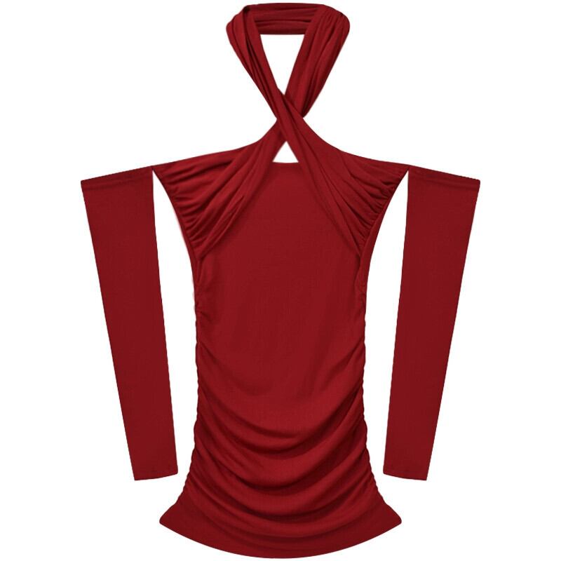 クリスマスドレス赤秋と冬の女性の純粋な欲望セクシーなクロスホルターネックヒップボトムレイヤーショートスカート レッド オータム 秋物 ウィンター 冬物 ピュア nana32548978915 | modepoisson
