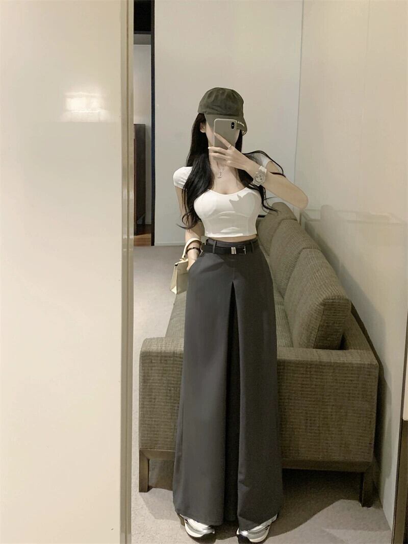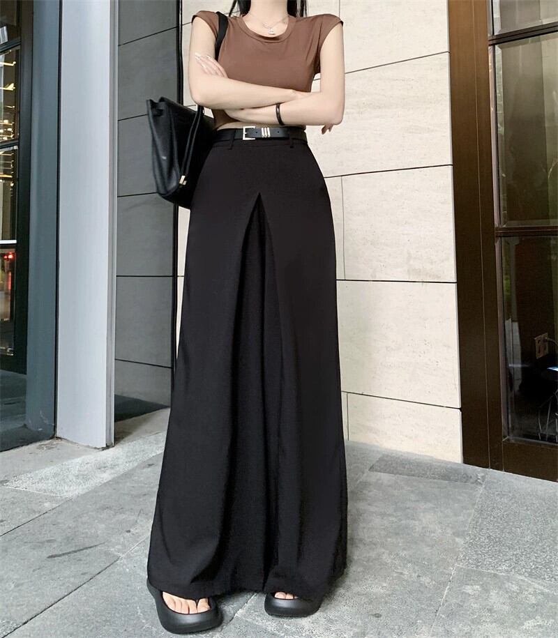 ワイドレッグキュロット女性 2024 夏の新しい人気のファッションスタイルハイウエストストレートルーズルーズドレープカジュアルパンツ サマー 夏物 nana55519866158 | modepoisson