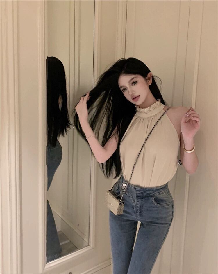 - エンド気質スーツ、サマーシックなホルターネックノースリーブオフショルダートップ、ハイウエストカーキショーツ、2点セットレディース 夏物 ブルマー nana39474050833 | modepoisson