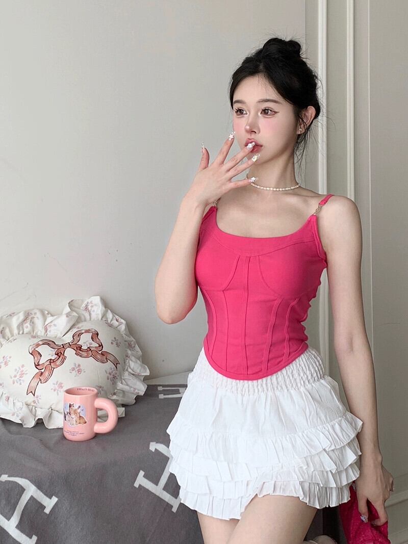 ホットセクシーなフィッシュボーンキャミソール女性の夏のインナーとアウターウェアショートノースリーブトップ甘くてスリム 半袖 ハーフスリーブ 大人ガーリー スウィート キュート カジュアル サマー 夏物 nana67777353085 | modepoisson