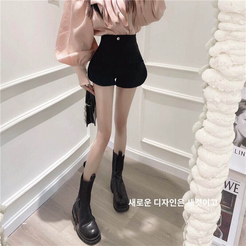 黒ワイドレッグパンツ女性 2023 夏の新ハイウエストショートパンツストレートスリムカジュアル A ラインパンツ ブラック サマー 夏物 ショーツ ブルマー Aライン nana50993866126 | modepoisson