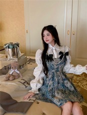 春の甘いスカートアメリカンツーピーススーツの女性の 2024 夏甘いスパイシーなサスペンダーパフドレスシャツ 大人ガーリー スウィート キュート カジュアル スプリング 春物 サマー 夏物 nana53585555526 | modepoisson