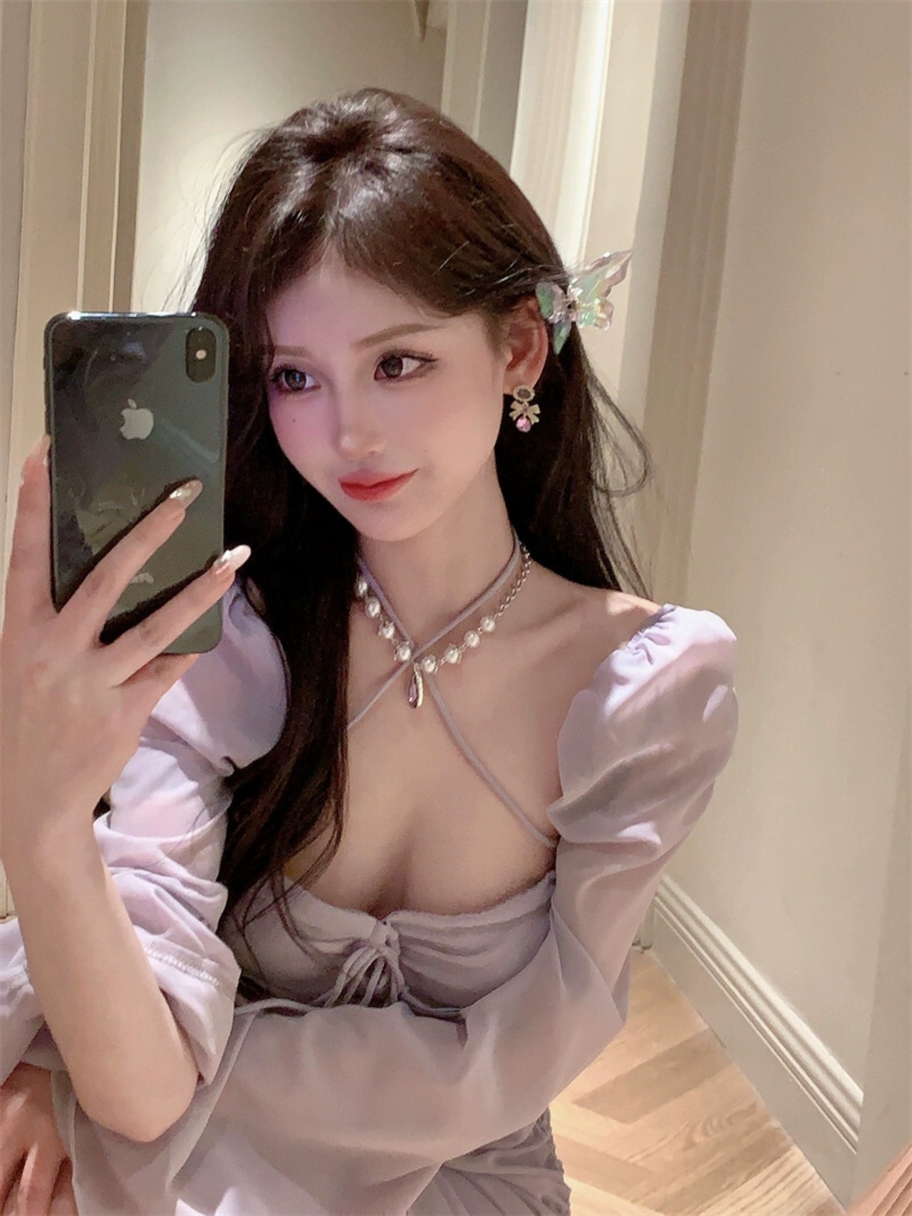 純粋な欲望スクエアネックホルターネック長袖シフォンスカート夏フレンチニッチ気質巾着プリーツヒップドレス女性 ロング サマー 夏物 スクウェア nana61514033757 | modepoisson