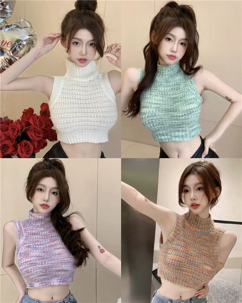 夏デザインの小さなベスト女性、ニッチなアウターウェア、シックでユニークなインナーウェア、ハーフハイカラーの中空ノースリーブトップ サマー 夏物 nana35269040464 | modepoisson