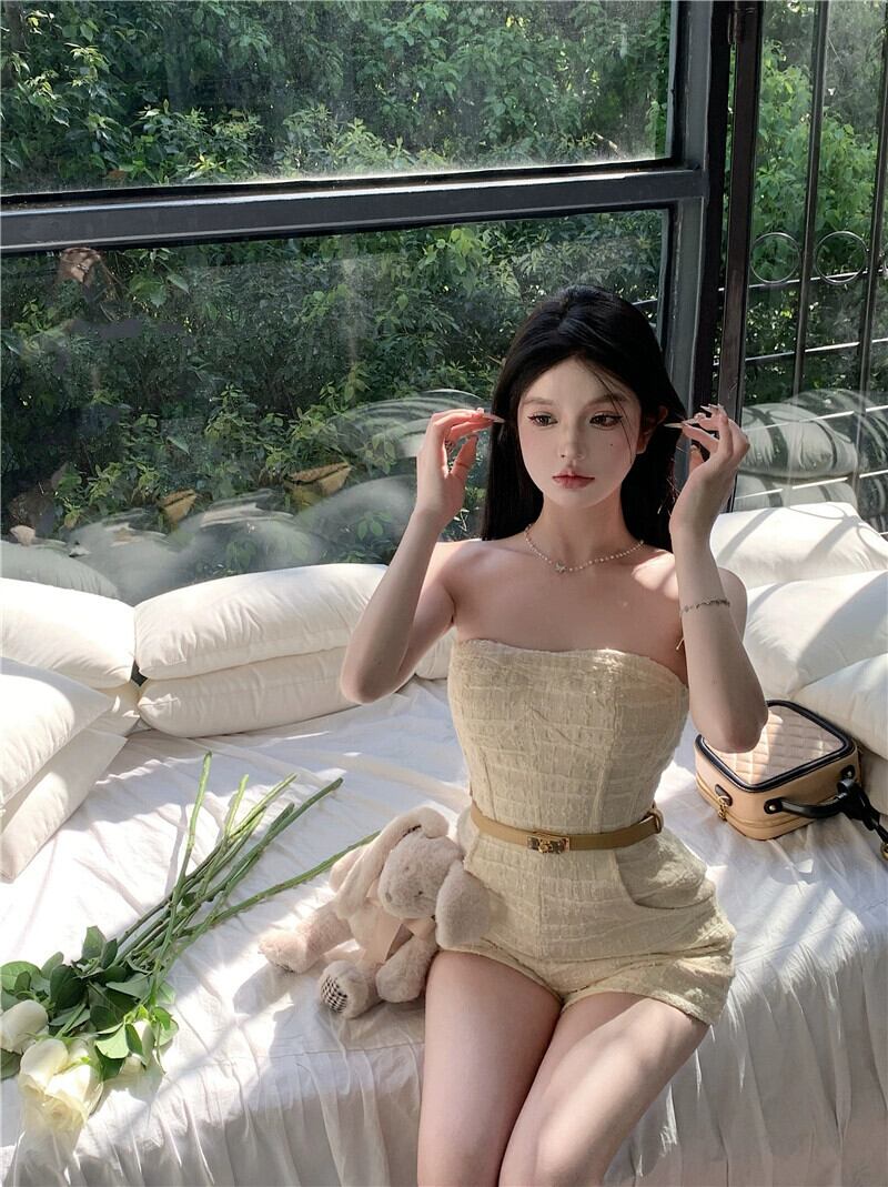 - 夏用チューブトップジャンプスーツ、ワンショルダーカジュアルパンツ、フランス気質ジャンプスーツ、ワイドレッグショーツ サマー 夏物 ブルマー nana91176204716 | modepoisson