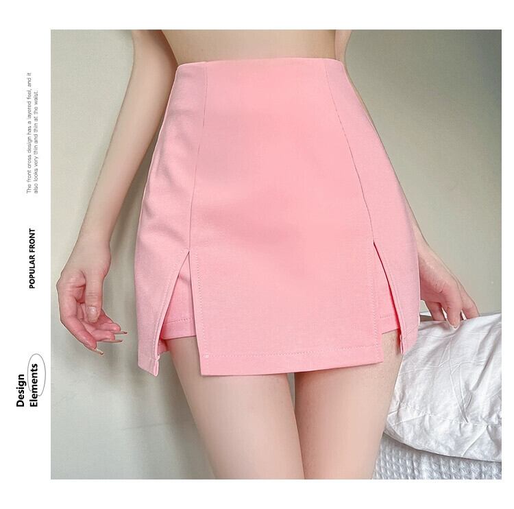 黒のショートスカートの女性 2024 春の新セクシーなスカートスリットハイウエスト痩身 a ラインスカート ハイウェスト ブラック スプリング 春物 Aライン nana38284414818 | modepoisson