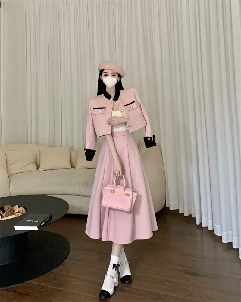 フレンチピンクの小さな香りの春と秋の新作コートハーフスカートセレブ気質ファッショナブルなツーピーススーツ婦人服 スプリング 春物 オータム 秋物 nana51698173696 | modepoisson