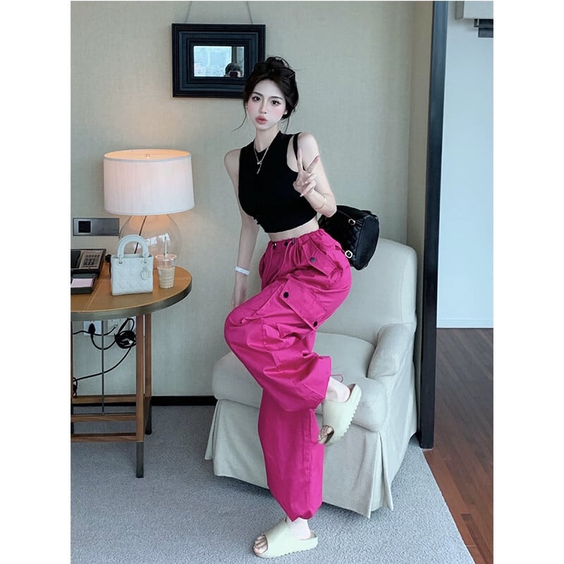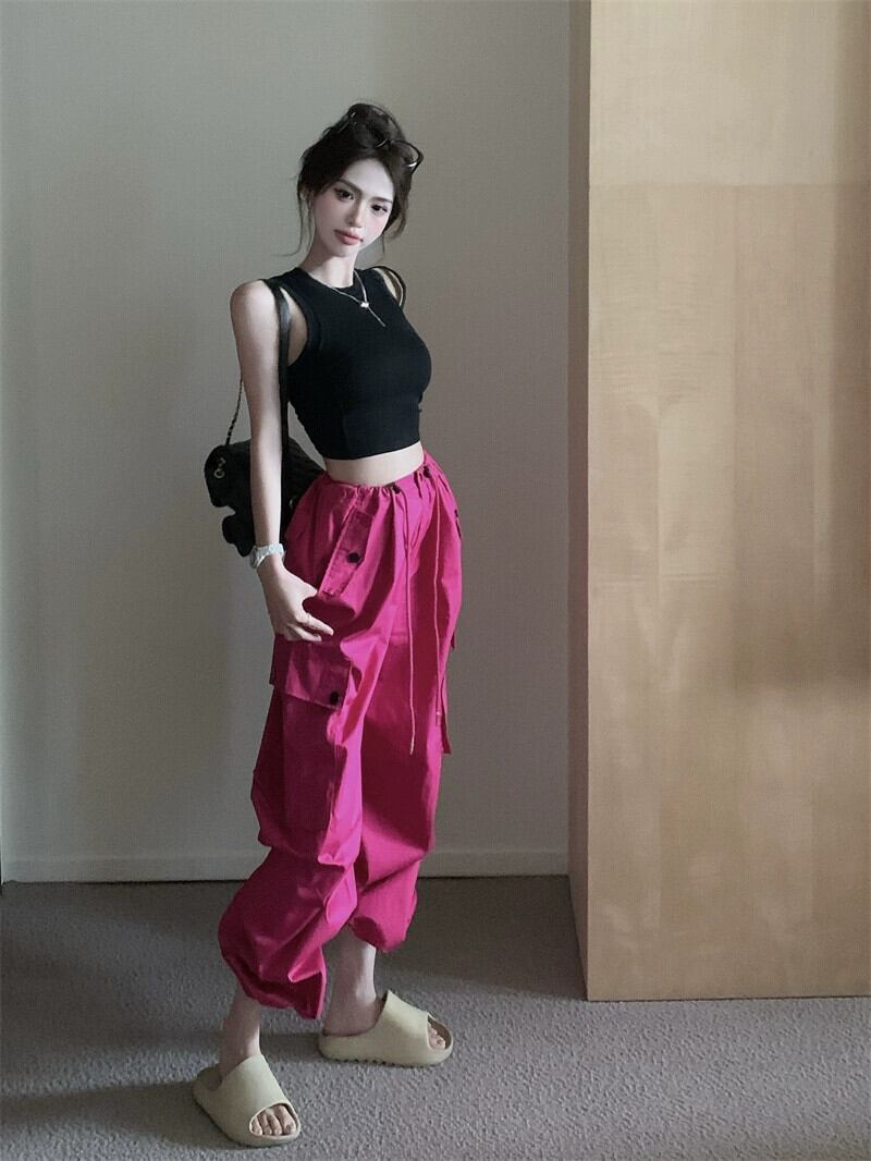 サマースーツレディース、ハイウエスト、痩身、カジュアルワークウェア、ワイドレッグパンツ、ショートセクシータンクトップ、トレンディなツーピースセット 夏物 nana41526808075 | modepoisson