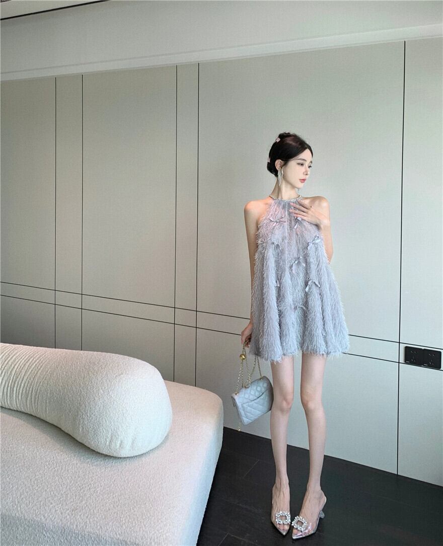 フレンチスタイルのホルターネックドレスの女性の夏のハイエンド社交界の女神スタイルのハイエンドの新しいサスペンダーショートスカート サマー 夏物 nana26406688113 | modepoisson