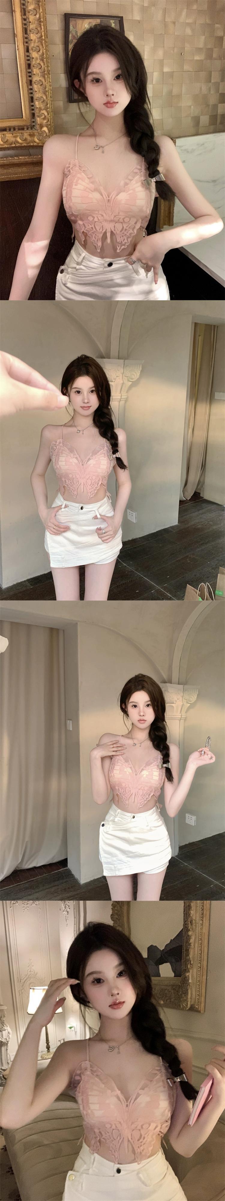 Pure Desire 重工業刺繍蝶キャミソール女性の夏ニッチホットガールセクシーなインサイドアウトユニークなアウターウェアトップ レッド サマー 夏物 nana17227650426 | modepoisson