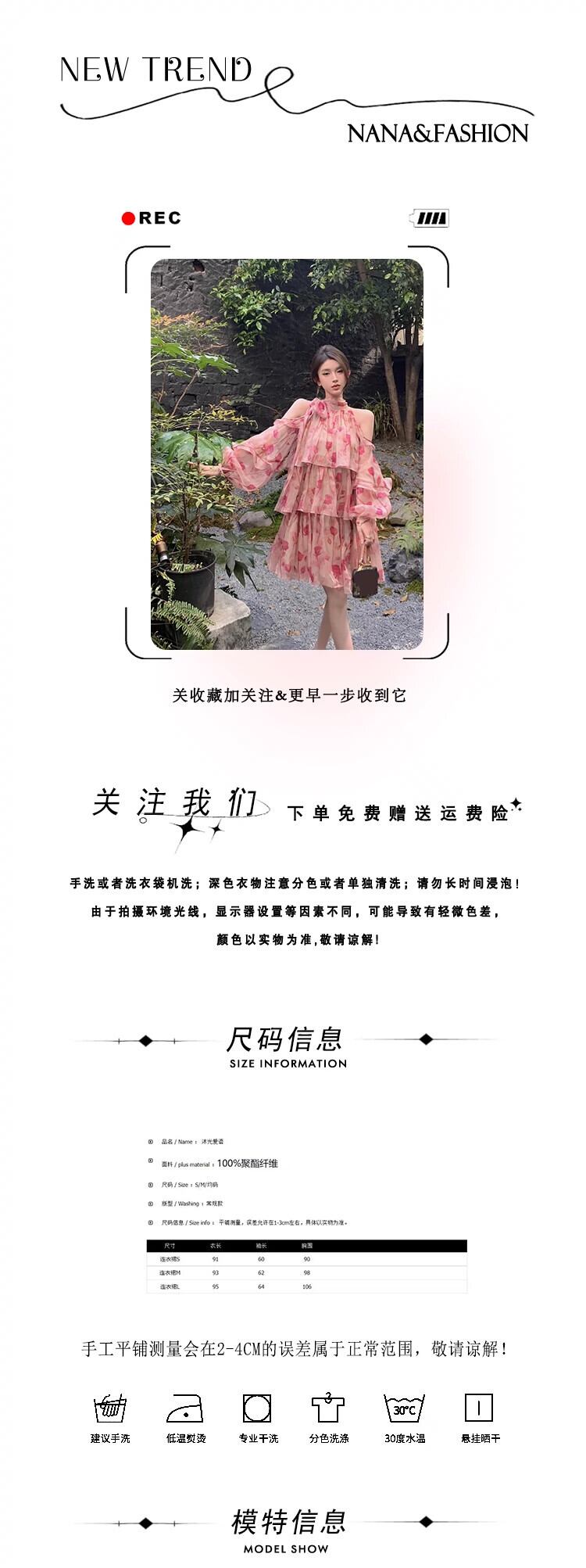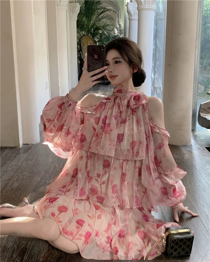 夏のフランスのティーブレイクドレスの女性、ハイエンドの甘い花柄のショートスカート、長袖ニッチフェアリースカート ロング 大人ガーリー スウィート キュート カジュアル サマー 夏物 nana26975273609 | modepoisson