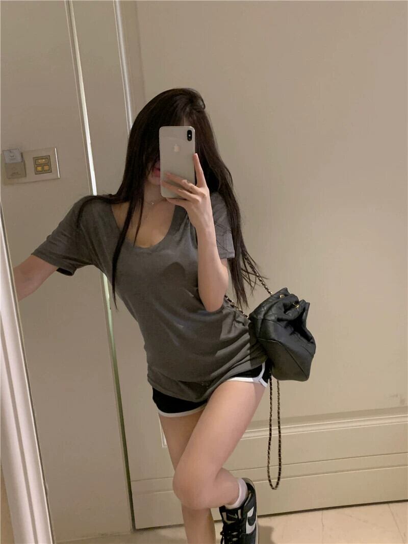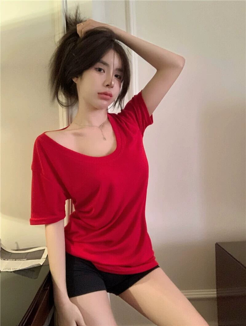 Pure Desire ルーズスリミング半袖 Tシャツ女性のソリッドカラーボトリングシャツ夏ニッチ多用途甘くてスパイシーなトップ ショート ハーフスリーブ 大人ガーリー スウィート キュート カジュアル サマー 夏物 nana57958544139 | modepoisson