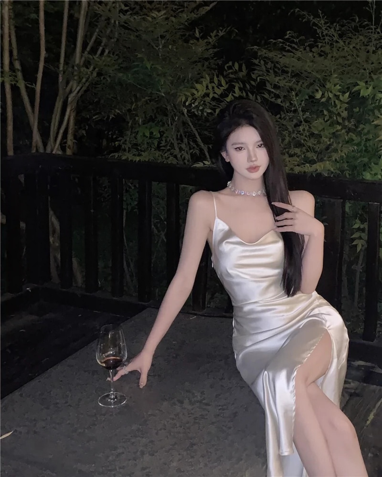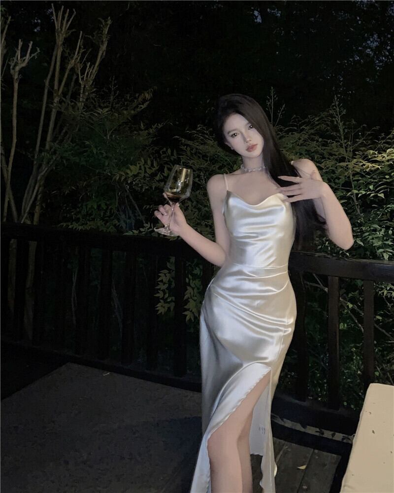 フレンチサテンサスペンダードレス、セクシー、純粋な欲望、スリット、ヒップカバースカート、ロングスカート、2024年夏の新しいスタイル サマー 夏物 ピュア nana65676142024 | modepoisson