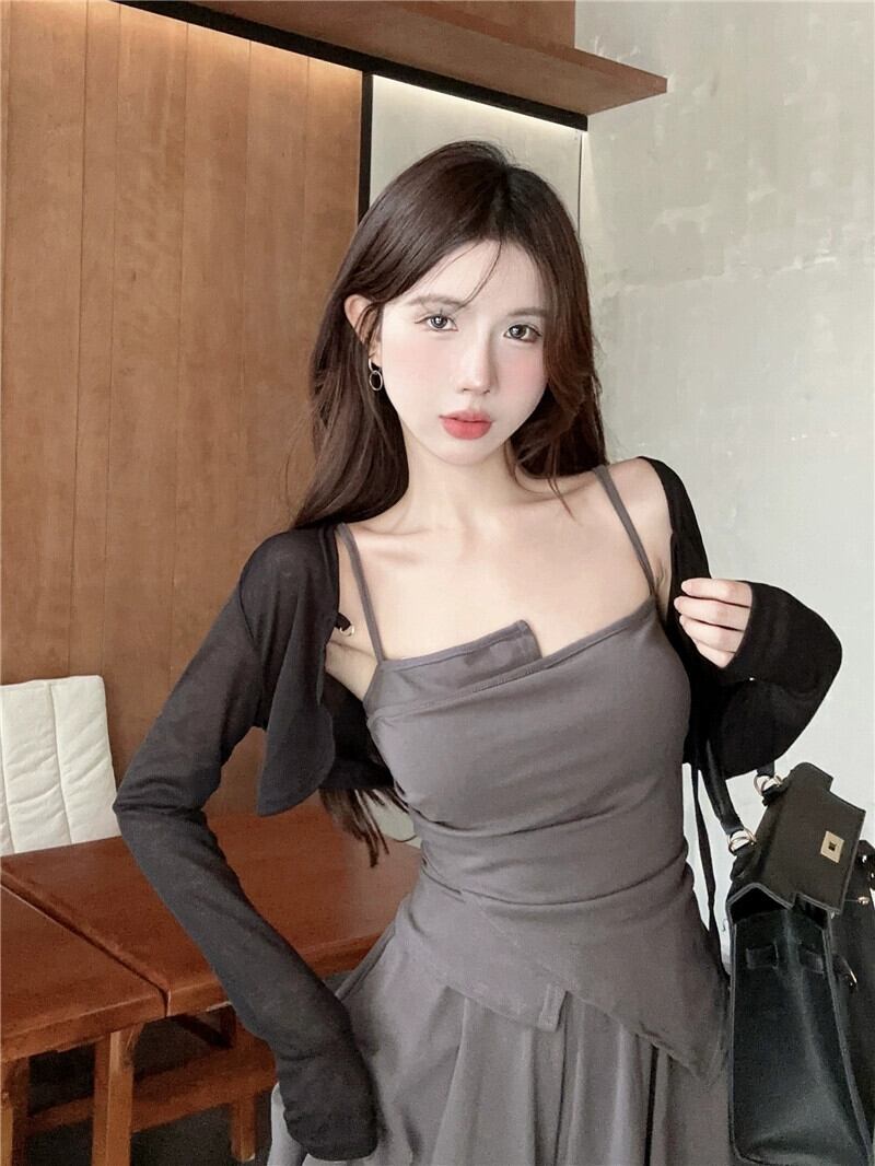 甘辛スリムスーツ編イレギュラーサスペンダー付きホットガールニットカーディガンハーフスカートレディース夏3点セット 大人ガーリー スウィート キュート カジュアル サマー 夏物 nana94651634109 | modepoisson