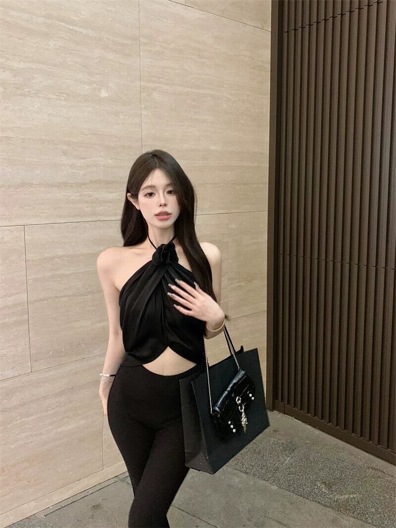 ホルターネックノースリーブシャツユニークなキャミソール女性の夏スリム気質ニッチ甘いショートスタイルトップ 大人ガーリー スウィート キュート カジュアル サマー 夏物 nana67375042945 | modepoisson