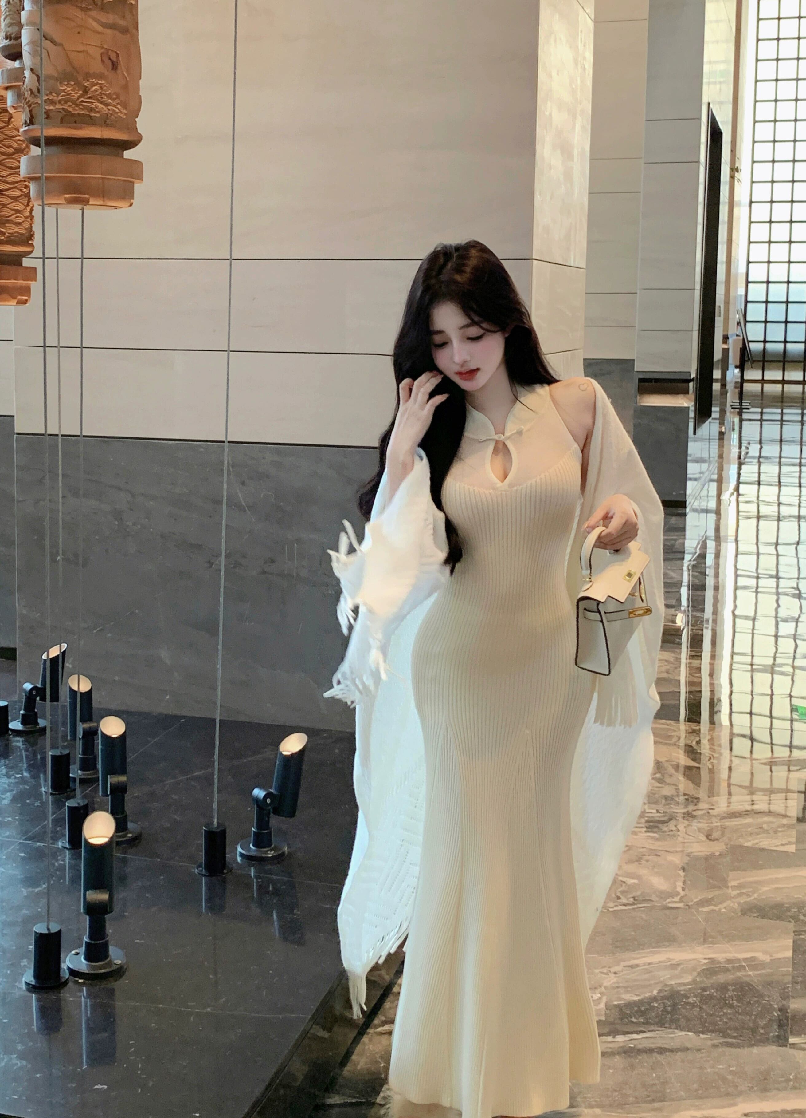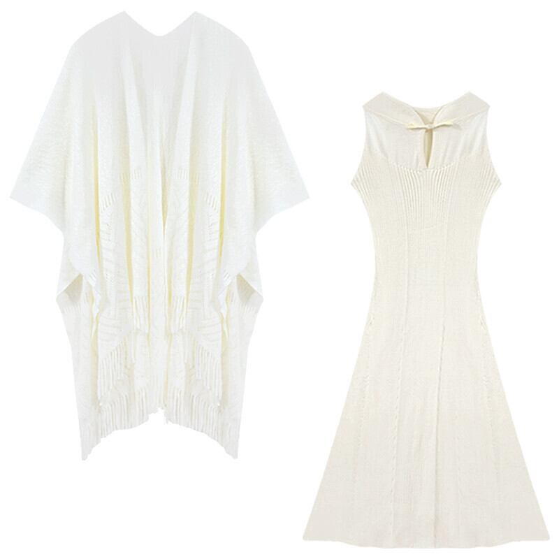 レイジースタイルショールカーディガンレディース長袖フィッシュテールチャイナドレスニットドレス初秋の新作スーツ2点セット ロング オータム 秋物 nana73178500382 | modepoisson