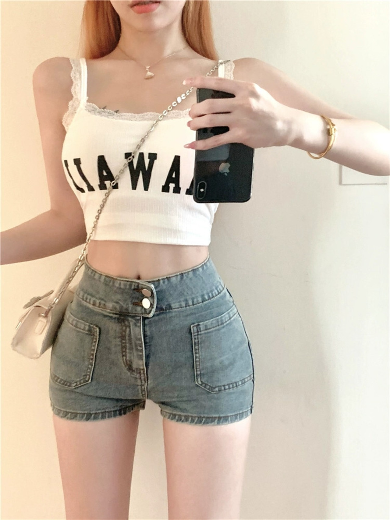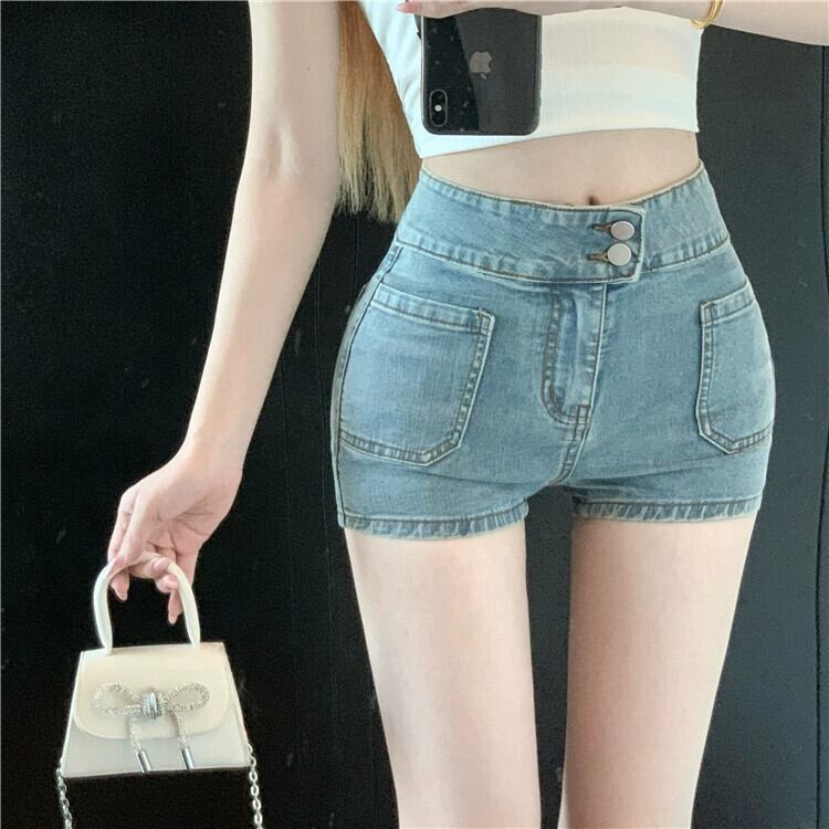 -ウエストスリムジーンズレディース2024夏新作ストレートパンツタイトワイドレッグパンツプチショートパンツ サマー 夏物 ショーツ ブルマー nana45651222498 | modepoisson