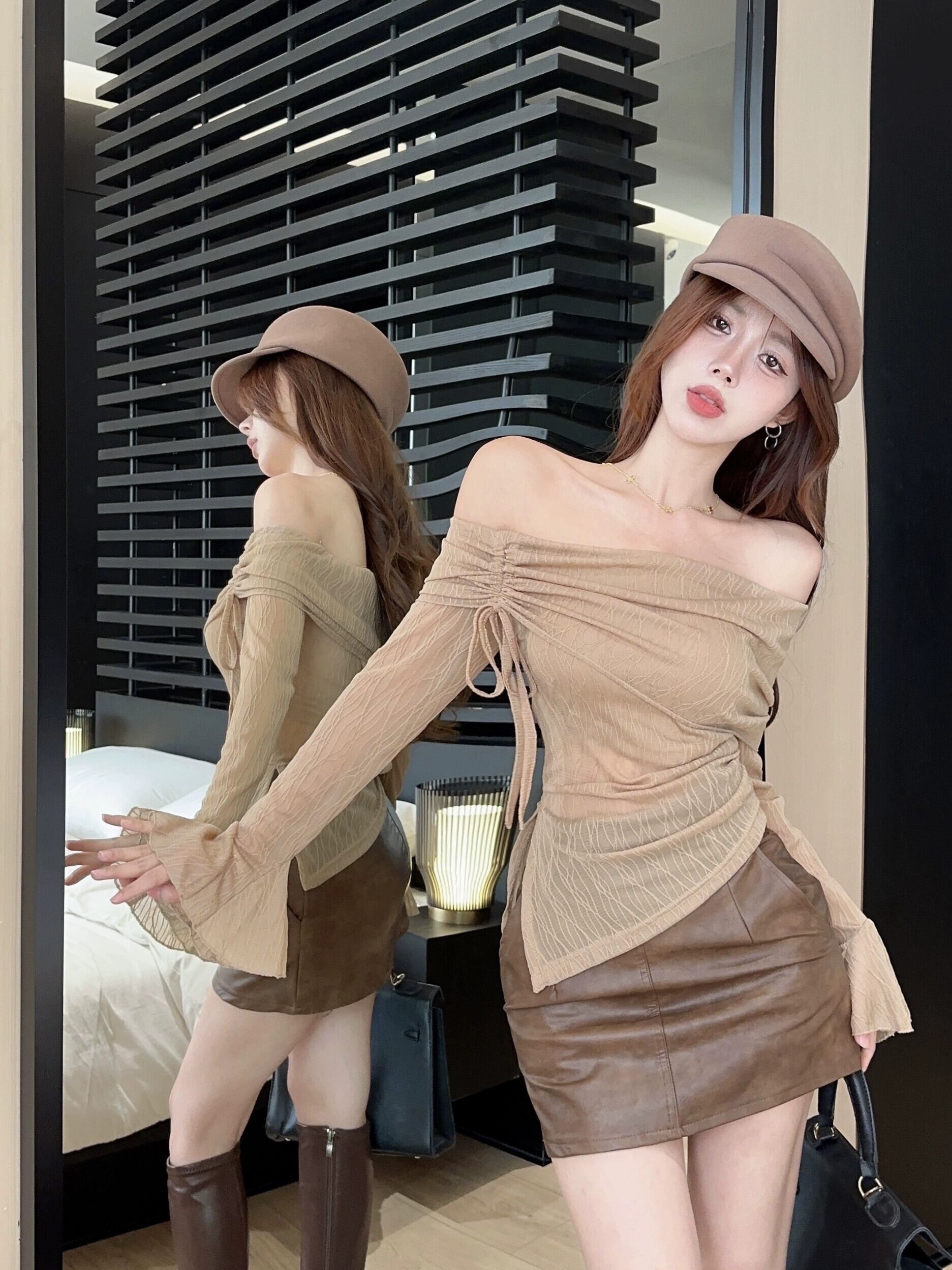 センスニッチ長袖 Tシャツ不規則な日焼け止めスリムワンショルダー新しい気質ショートトップ女性の春と夏 ロング スプリング 春物 サマー 夏物 nana96433325875 | modepoisson