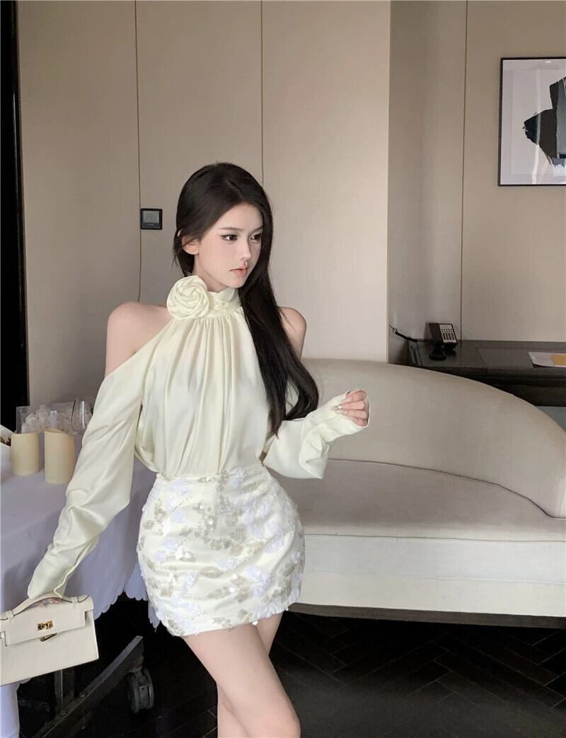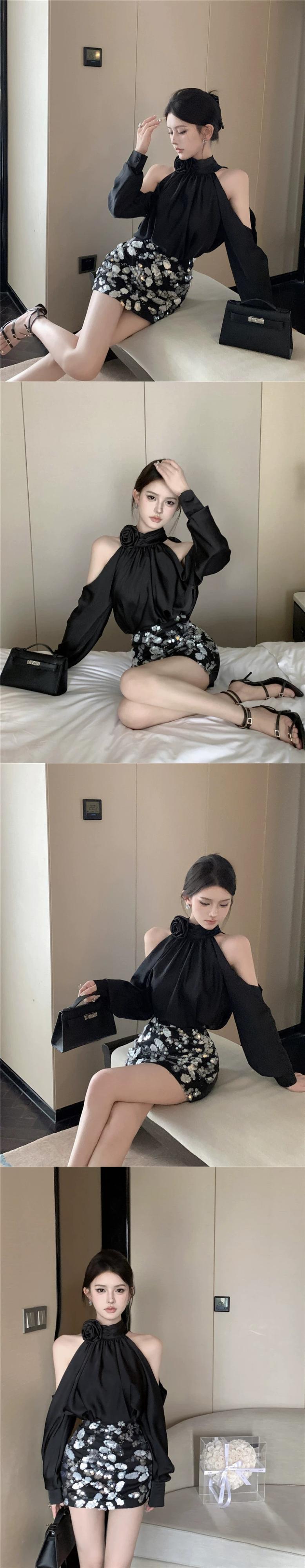 色:アプリコットスカート,アプリコットトップ,黒スカート,ブラックトップ