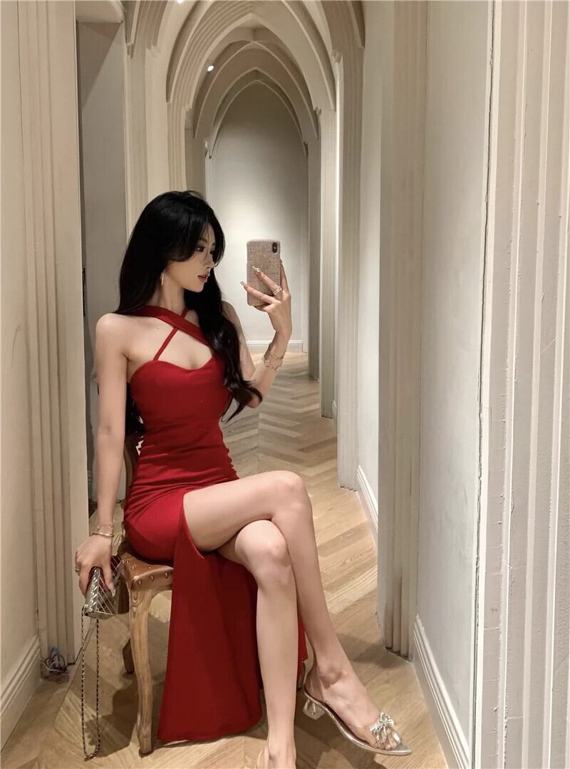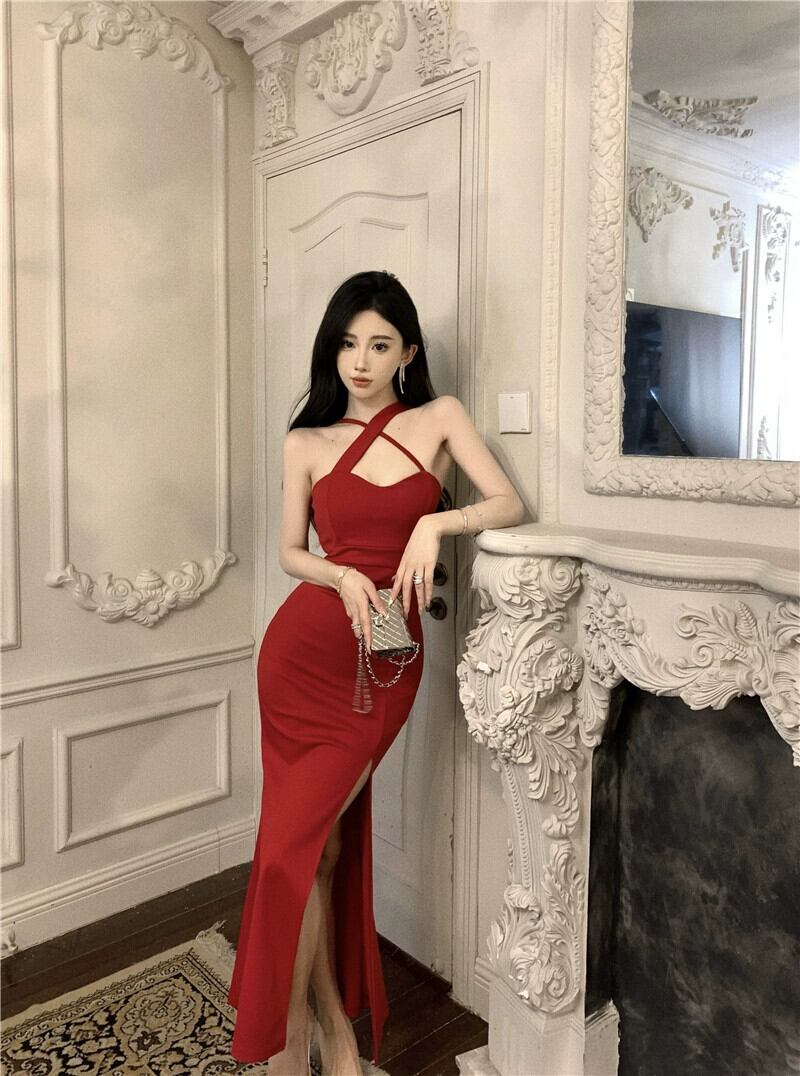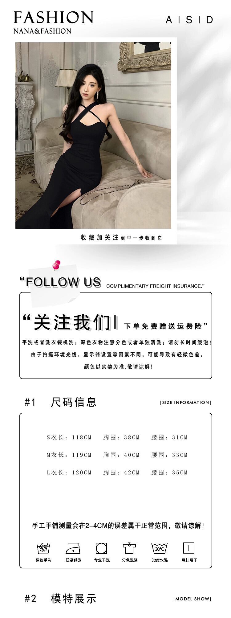 気質サスペンダードレス、純粋な欲望、セクシーなスリットフィッシュテールドレス、ロングスカート、ヘップバーンスタイルの黒のスカート、女性の夏 ブラック サマー 夏物 ピュア nana67413689290 | modepoisson