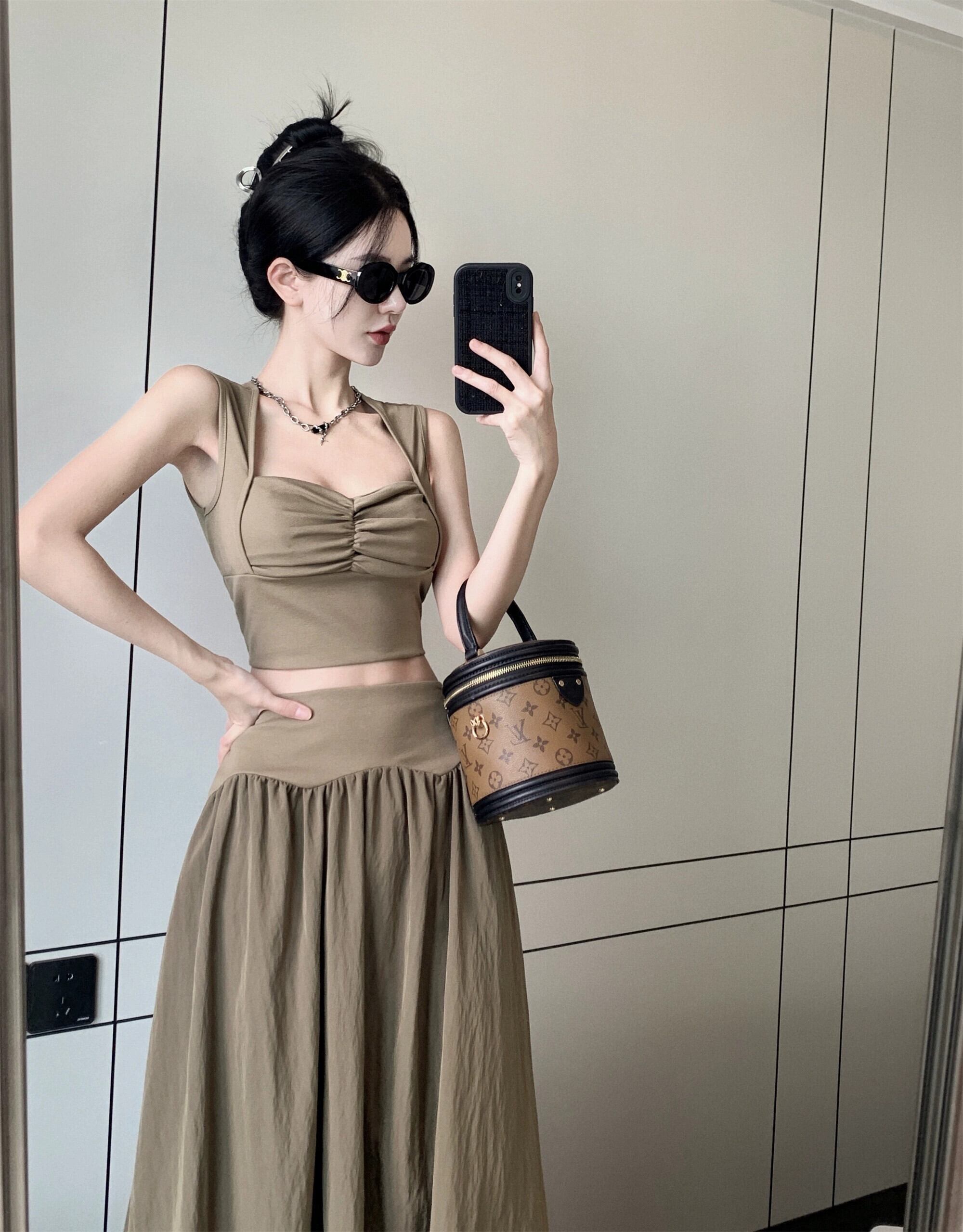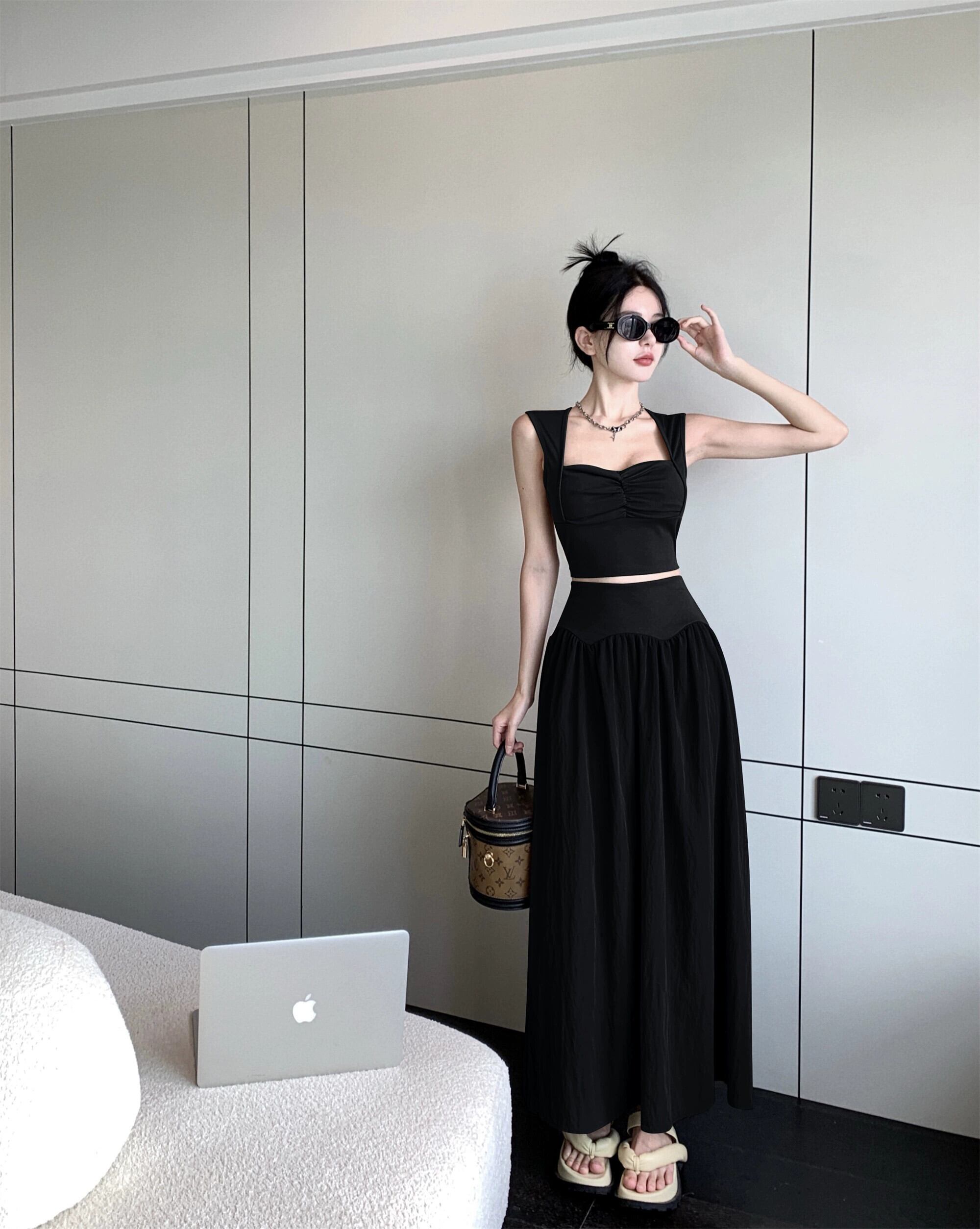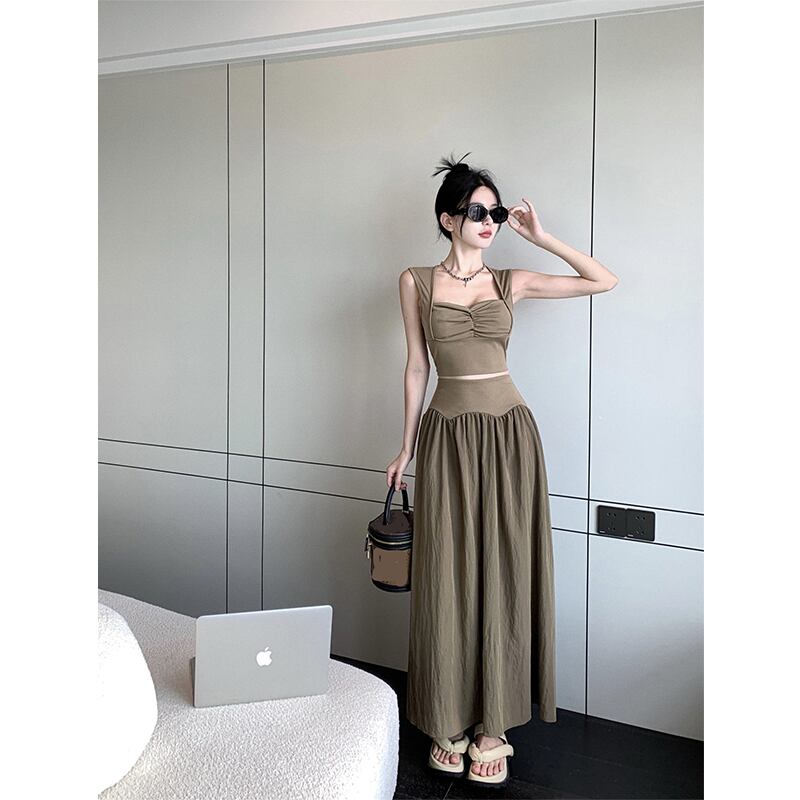 気質レトロなスクエアネックベストシックなトップ甘辛スーツ夏のウエスト痩身スカートツーピースレディースセット 大人ガーリー スウィート キュート カジュアル サマー 夏物 スクウェア nana92108427331 | modepoisson