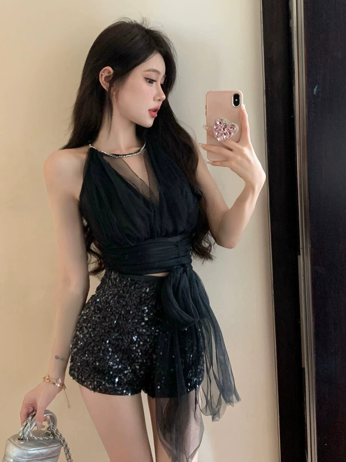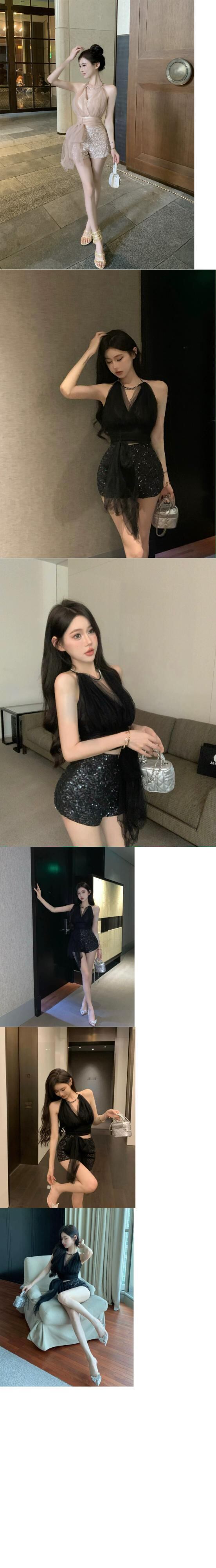 ホットホルターネックサスペンダートップスパンコールショーツハイエンド小さなドレスツーピースセット女性の新しい夏のファッションスーツ サマー 夏物 ブルマー nana85317034757 | modepoisson